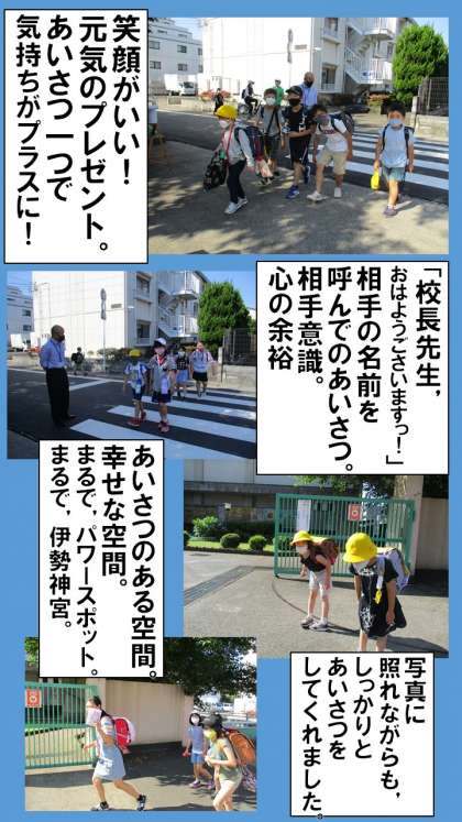 先週の児童朝会で発表された6・7月の月目標「元気にあいさつをしよう!」