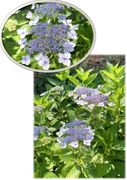 校門前の日本庭園にガクアジサイがきれいに咲いています。梅雨の時期にふさわしい花ですが,天候は梅雨の時期とは,違う感じですね。