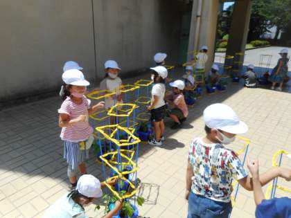 1年生 朝顔に支柱をたてました
