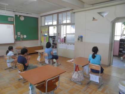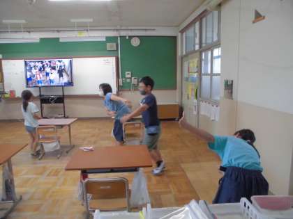 一年生を迎える会がありました。まず,どんなふうに一年生を迎えたらよいかを考えました。「手をつないでいる気持ちで」「入学おめでとうと思って」「ワクワクしながら一緒に歩いている気持ちで」「拍手をして」など一年生を思う温かい気持ちをもって迎える会に臨むことができました。一年生が廊下を六年生と一緒に通った時には「おめでとう。」といって拍手をしっかりしていました。各クラスの三択クイズにも楽しく答えることができました。廊下で一年生に出会ったら温かい気持ちで挨拶がこれからもできたらいいですね。