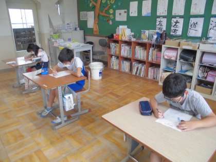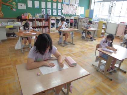 今日は計算名人大会でした。5分前から椅子に座って準備をして放送に耳を傾けていたなかよしのみんな。教頭先生のドラえもんのお話で計算名人になるためにドラえもんがポケットからだしたものは・・・計算ドリル!!そのお話を楽しく聞いていました。計算の時間になると集中して計算問題に取り組んでいました。毎日の学習の成果をしっかりと出すことができました。