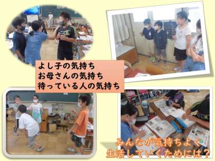 よし子・お母さん・待っている人に分かれて気持ちを考えてみよう!