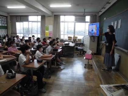 読書週間ということで,図書司書の先生にブックトークをしてもらいました。
