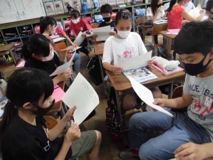 夏の言葉を多く入れている子,夏のものを連想させる言葉を並べている子など,工夫はさまざま。