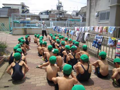 着替える場所や着替え方,注意点などをしっかりと確認し,いざプールへ!!
