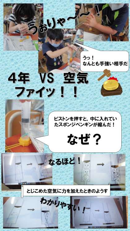 注射器の中で空気がどうなっているのか,図にかいて考えました。