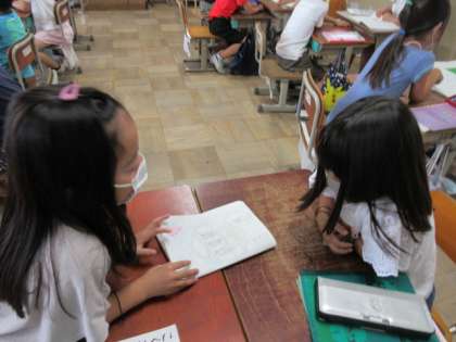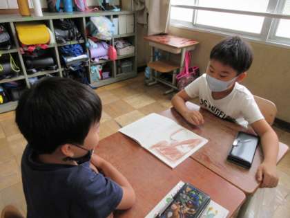国語科の学習で,「あったらいいな。」と思うものを絵に描き,友達に紹介しました。紹介を聞いた人は,興味をもって,いろいろな質問をしていました。