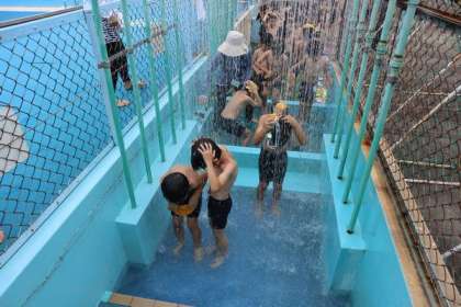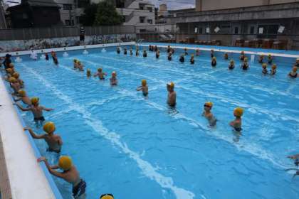だいぶ慣れてきて,大きなプールに顔をつけたり,もぐったりすることができてきました。