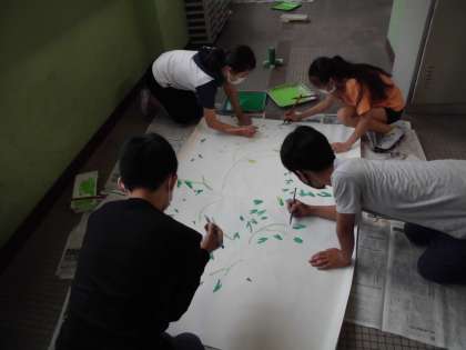短冊を貼る笹は,数名の児童ががんばって描いてくれました。