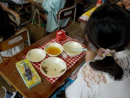 今日は,まさに,そのいわしの「命」を「いただき」くということで,子ども達も真剣な表情で「いわしのしょうが煮」と向き合っていました。