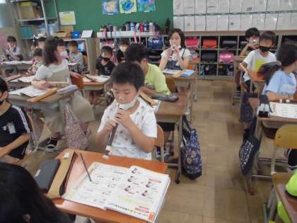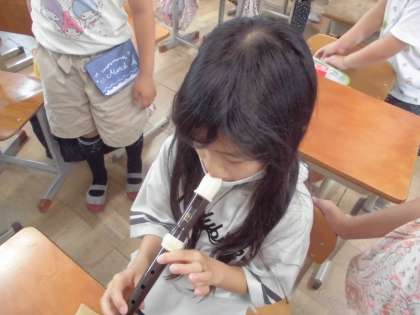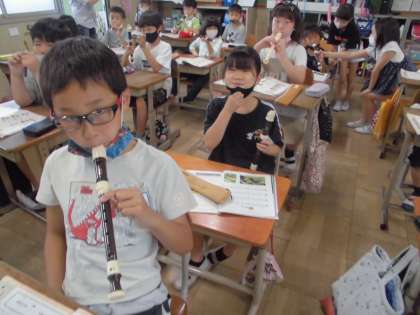 音楽科では,リコーダーの学習をしています。