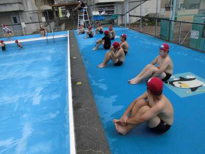 「やったー!!やっと泳げる!!今年こそ25m泳ぐんだ,絶対に!!」