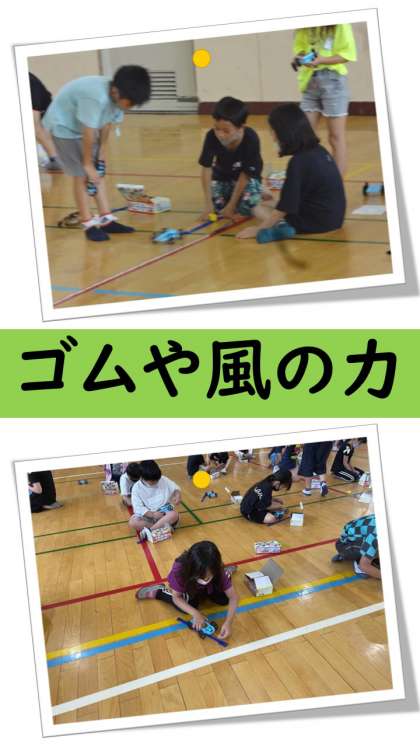 理科「ゴムや風の力」の様子です。