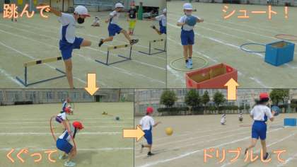 1学期の体育で行った,体全体を使ったほぐしの運動やボール運動を扱った内容になっています。
