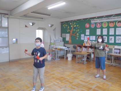演技のある学年は9月から運動会に向けて練習が始まっています。なかよしの教室でもみんなと一緒に4年生の鳴子を練習しています。6年生は学年のみんなと一生懸命,練習に取り組んでいます。