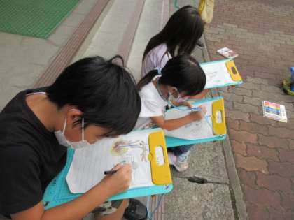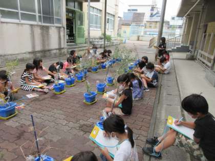 生活科でミニトマトの観察をしました。まだまだ青々と花や実がついている人もいれば,枯れてしまった人もいましたね。探検ボードをもって,みんな真剣に観察していました。絵もとっても上手になりました。