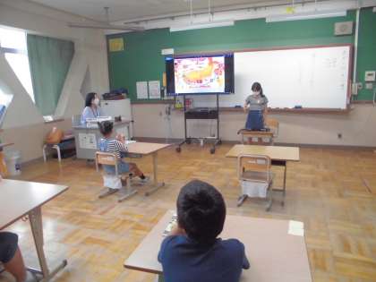 今週のパワーアップタイムでは,「おおあたりぃ〜」という絵本を読んでいます。ありえないものがあたるという内容の絵本で「鹿があたった!かばがあたった!」と楽しんで読んでいます。「おおあたりぃ〜」のところはみんなで声を合わせて楽しく読むことができました。メロディーベルも鳴らして本当にくじびきをしているような楽しい雰囲気で取り組んでいます。
