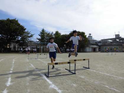 6年生は「ハードル走」があるので,その練習をしています。
