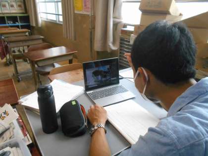 GIGA端末を持ち帰り,Teams会議を行いました。