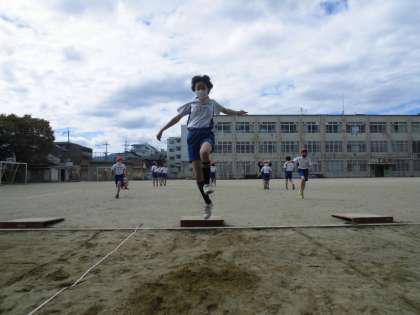 運動会も終わり,5年生の体育では,「走り幅跳び」の単元を学習しています。