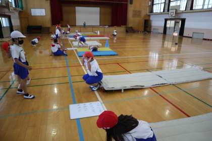 前転や後転や壁倒立など,いろいろな技に挑戦しています。
