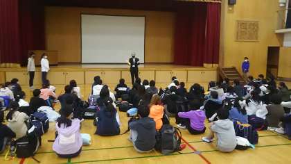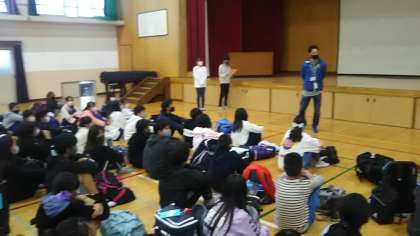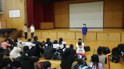 待ちに待った修学旅行!でも雨!いや,雨なんて関係ない!みんなのエネルギーを合わせて最高の思い出をつくっていこう。校長先生からは,「みんなが楽しむためにはどうしたらよいか」,出発式の担当児童からは「感謝の気持ちを忘れずに」という話がありました。一回り成長したみんなの帰りを楽しみに待っていますよ。
