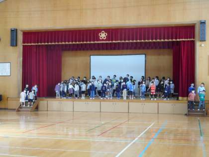 練習を始めたころは,自分のセリフを忘れたり,声が小さくて聞こえなかったりしましたが,今日は声も大きく,とても上手にできるようになりました。