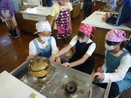 米の様子を見ながら,火を強火から弱火にかけたりと