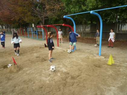 「最後は砂場の穴に入れる。」「どんなところからでも足を使う。」など
