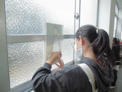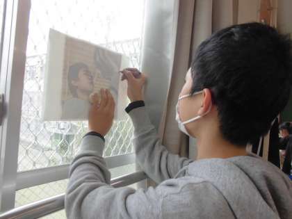 今年度の版画は「小学校にある思い出の物を持つ自分」を描きます。