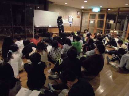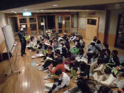 キャンプファイヤーが終わり,みんなニコニコ満足そうな表情で宿泊棟にもどってきました。