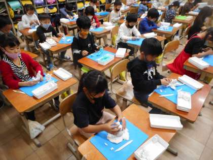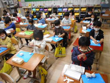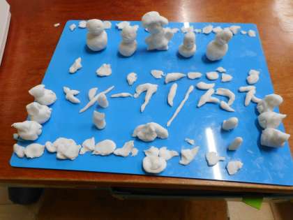 今日は粘土で作品をつくりました。