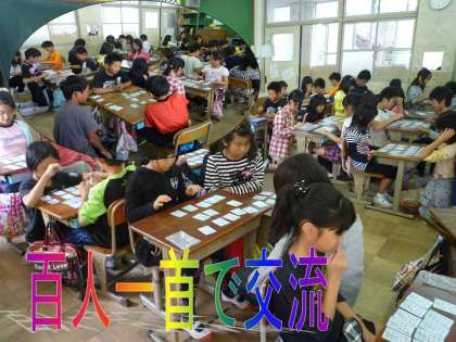 6年3組と3年1組で,百人一首対決。