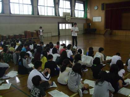 声を遠くにとばすことを目標に,はっきりとした声で読みました。