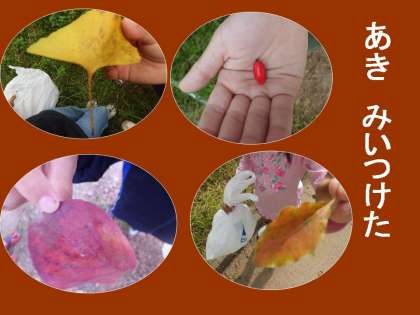 少し色づいた葉を拾ったり,小さな赤い実を拾ったり,小さな秋を見つけることができました。
