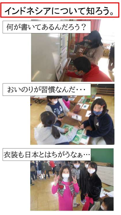 今回は,「インドネシアについて」です。様々な展示物を通して,インドネシアの文化に触れることができました。理解を深めていく中で,偏見なく自分も相手も大切にできる人になってほしいと思います。