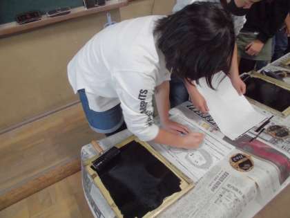 一生懸命彫ってきた版を使い,いよいよ刷る時がやってきました。