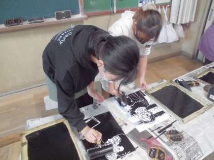 図画工作科「版で広がる私の思い」の学習の様子です。