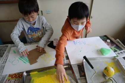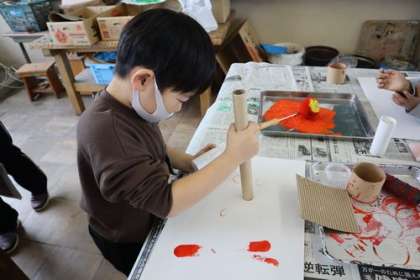 お家にあるもの(プチプチやトイレットペーパーの芯など)を使ってコロコロしたり,