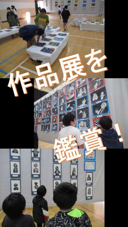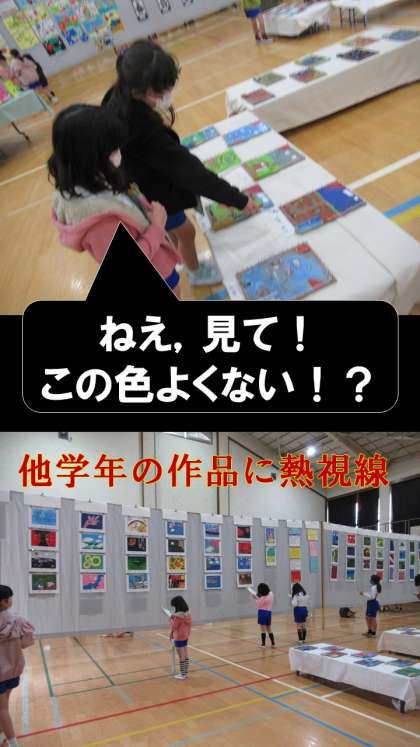 高学年の作品に圧倒されたり,低学年の作品を見てなつかしく思ったりしていました。