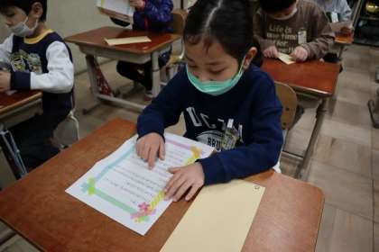 以前保護者の方からいただいたお手紙を,1年生のふり返りをした後に
