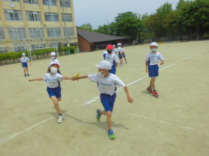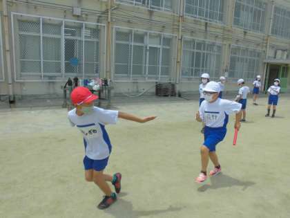体育科「リレー」の学習の様子です。