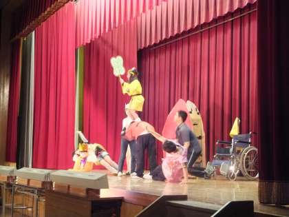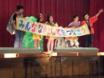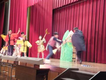 なかよし学級の学芸会は,西遊記です。山の火を消すためにピラミッドをつくってうちわを手に入れたり,強敵が待ち構えていたり,と,波乱万丈の冒険でした。
