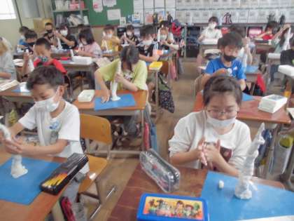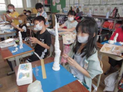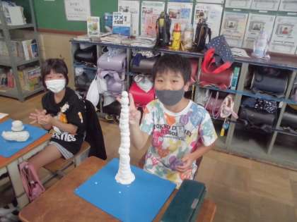 粘土を丸くして積み上げたり,下から上に向けて少しずつ細くしていったり…