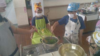 ほうれん草をゆでる時間もチームで数えている姿は微笑ましい光景でした。
