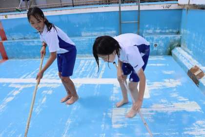 プール開きに向けて,学校代表としてプール掃除をしました。