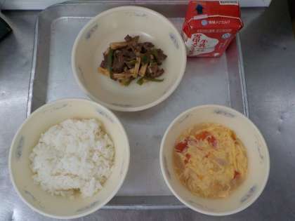 ・チンジャオロースーのたけのこがいいやわらかさでとてもおいしかったです。ちょっと苦手なトマトも,やわらかくておいしかったです。これからもおいしいきゅう食をたくさん作ってほしいです。