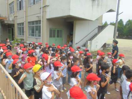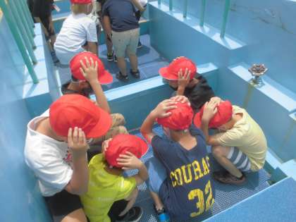 体操をしたり,腰洗いをしたりと,水遊びの準備は万端です。