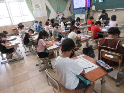 今日は算数(計算)名人大会がありました。1年生は,「いくつといくつ」の問題に取り組みました。数図ブロックを使って,いくつといくつに分かれるか考えました。集中して真剣に向かうみんなの姿がとても素敵でした。全問正解できたかな。