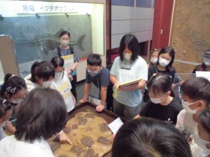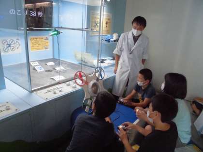 プラネタリウムで星空の学習をした後、いろいろな展示を見ながら、科学センターの先生にたくさん面白いことを教えていただきました。